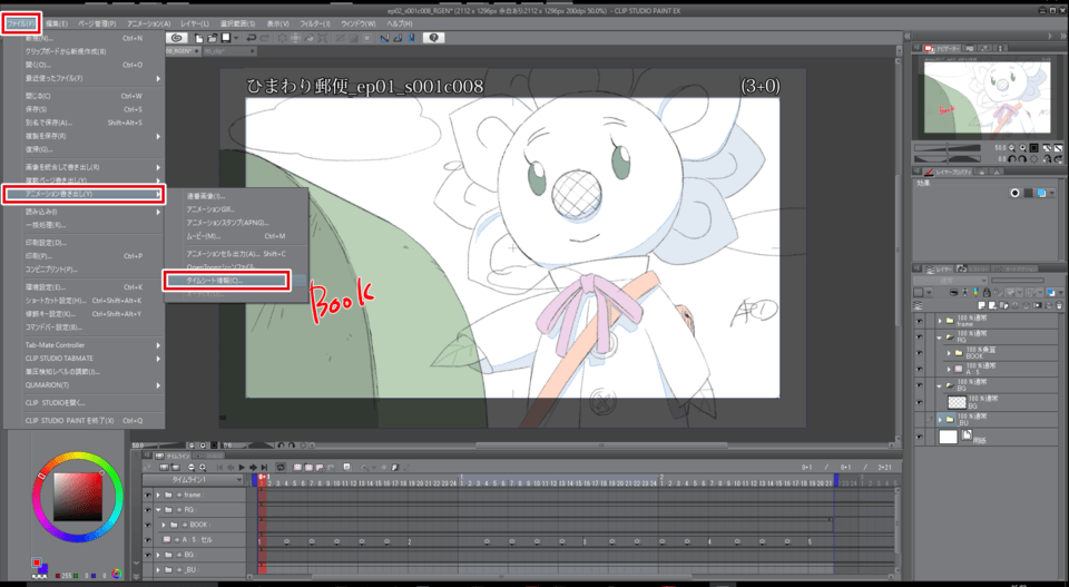 アニメーションセル出力で背景など表示させる書き出し方 Clip Studio